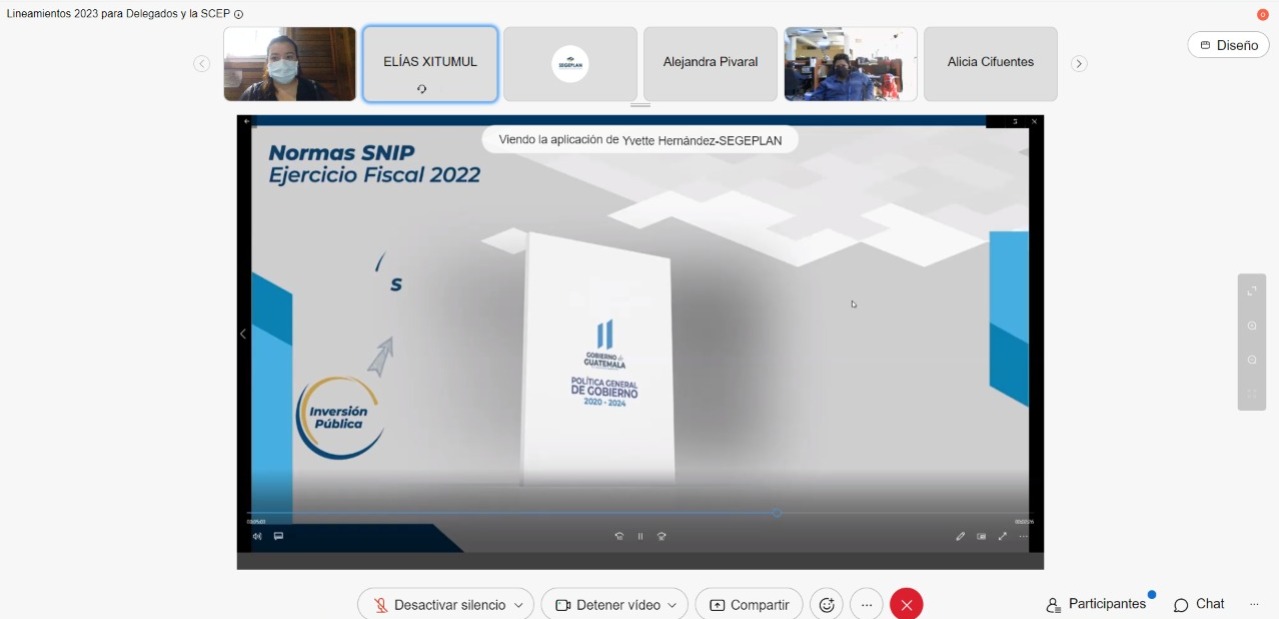 El día de hoy la supervisora de obras arquitecta Maria Andree Paz esta participando de la reunión virtual sobre "lineamientos del proceso de planificación y programación CODEDE 2023" en el marco del punto resolutivo 14-2016 del CONADUR por parte de la Secretaria de Planificación y Programación de la Presidencia -SEGEPLAN.