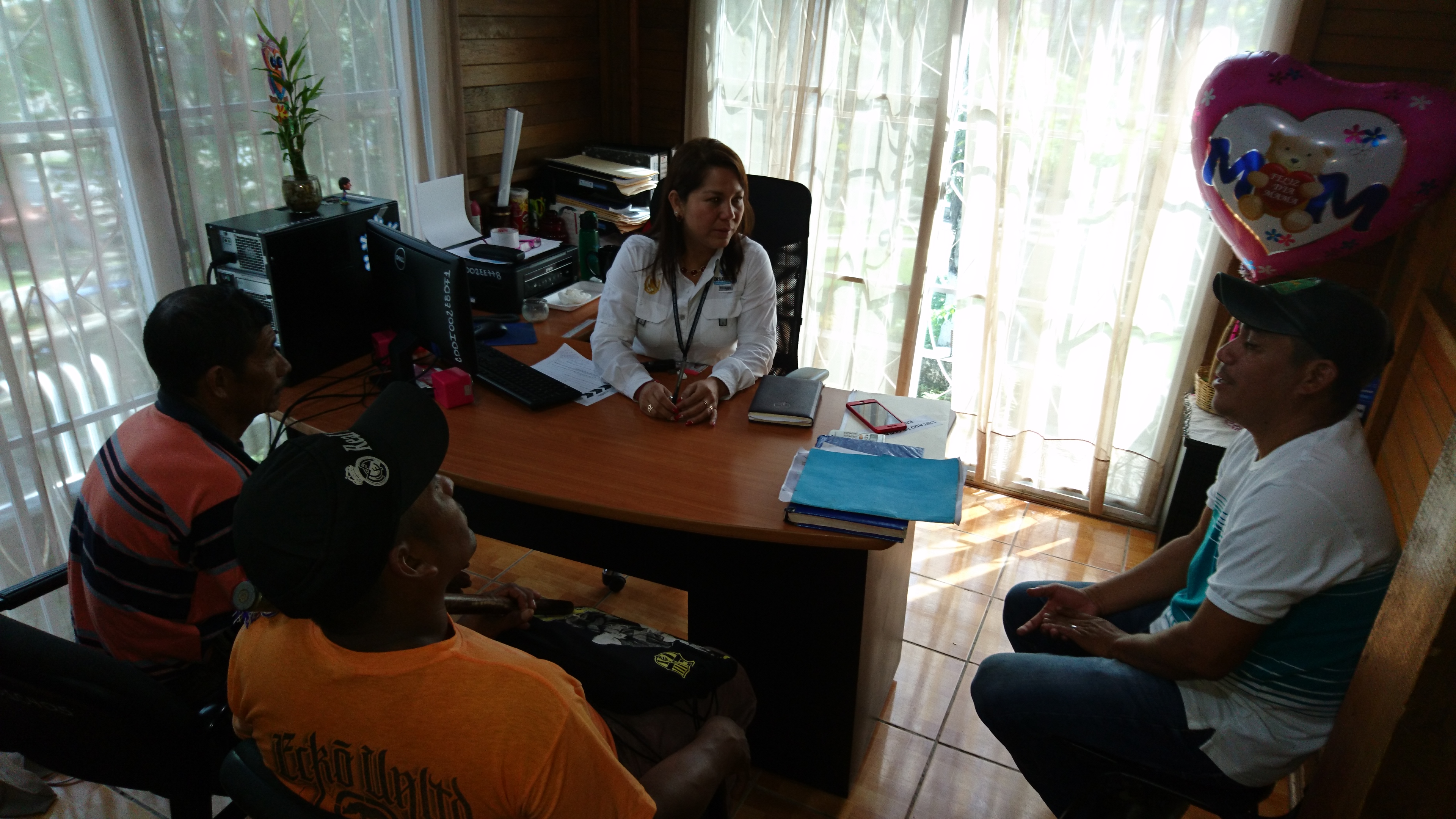 La Directora Ejecutiva, del Consejo Departamental de Desarrollo Izabal, brinda asesoría a miembros de la Comunidad Chinamococh, El Estor, Izabal.
