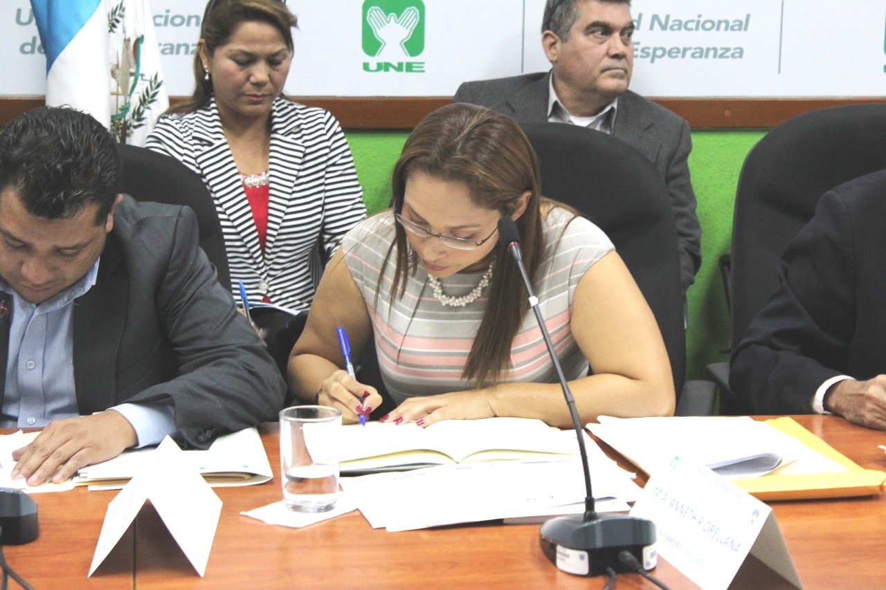Presidente, Directora Ejecutiva y Secretario del Consejo Departamental de Desarrollo Izabal, en la citación del Bloque UNE, para dar informe sobre la ejecución del ejercicio fiscal 2018, del Departamento de Izabal.